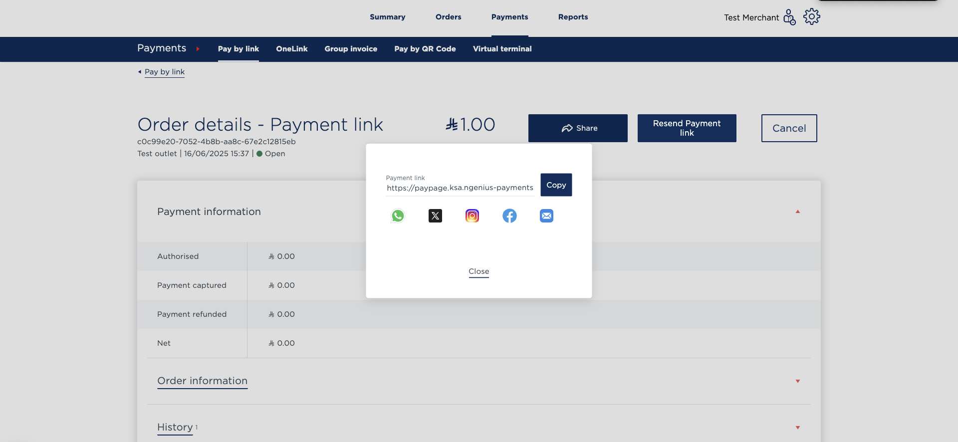 Pay by Link service includes the capability to share payment links directly via your social media channels. This feature is designed to help you connect with your customers more effectively by reaching them on the platforms they use most.